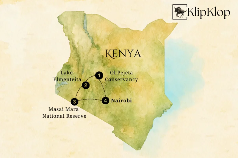 Set off on an unforgettable 9-day safari through Kenya’s most iconic landscapes, blending thrilling wildlife encounters with luxurious stays. Your journey begins in Ol Pejeta Conservancy, a pioneering Big 5 reserve that shelters the last two northern white rhinos. From there, travel to the serene Lake Elementeita, where golden acacias frame flamingo-lined shores and abundant birdlife. Continue on to the world-famous Masai Mara Triangle, a spectacular wilderness where lions, leopards, elephants, and great plains game roam across the rolling savannah.